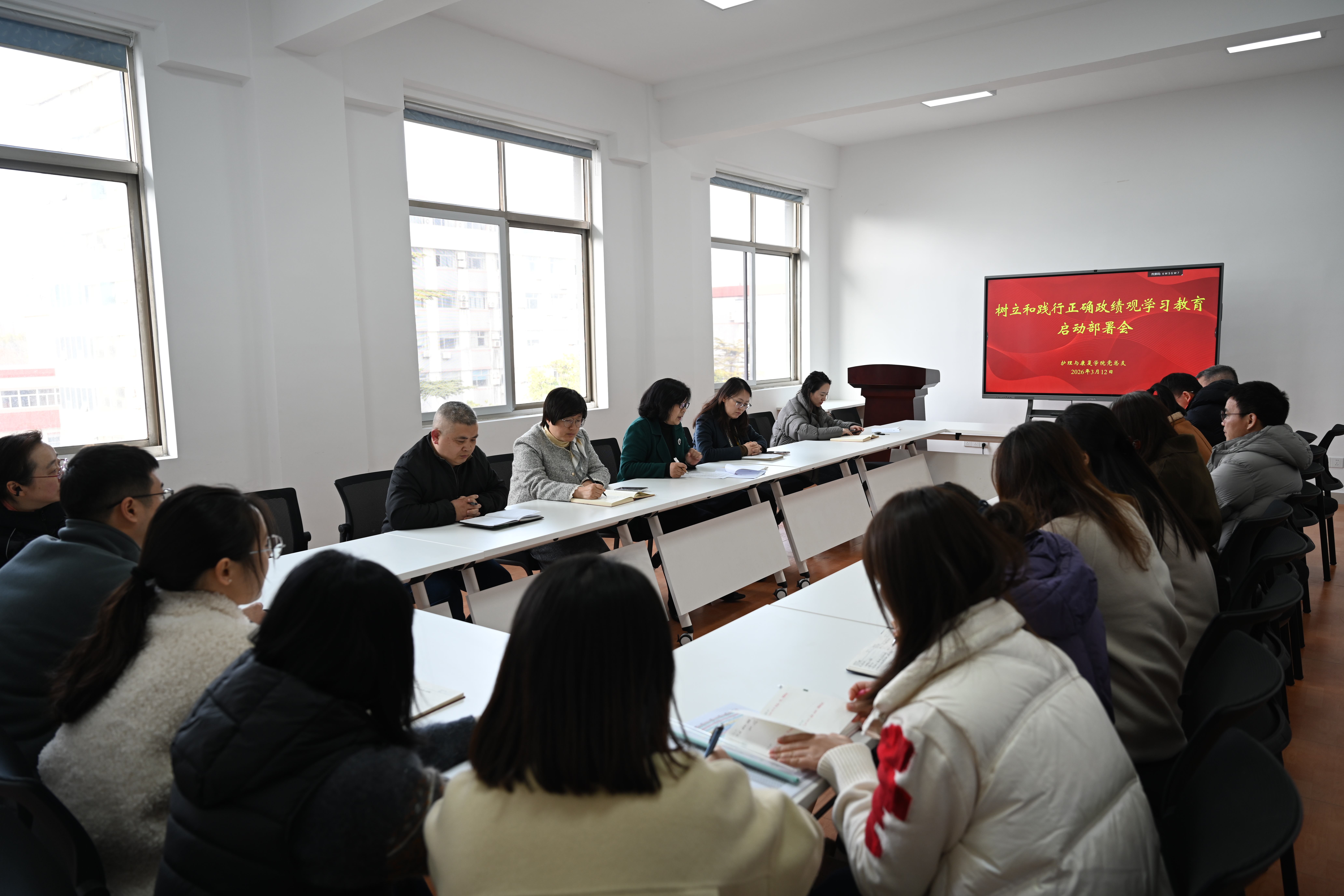 学院党总支书记史亚琴主持会议,传达中共中央办公厅印发的《关于在全党开展树立和践行正确政绩观学习教育的通知》精神,并就开展好此次学习教育提出三点要求,一是要突出“深学细悟”,在筑牢思想根基上持续发力,要克服“任务心理”和“应付心态”,扎实开展学习研讨,深入查摆问题,狠抓整改整治;二是要注重“学用结合”,在推动学院发展上务求实效,要大力弘扬理论联系实际的优良学风,把开展学习教育与制定落实学院“十五五”发展规划和2026年重点工作紧密结合起来,推动学习成果转化为务实举措和显著成效;三是要发挥“头雁效应”,在营造浓厚氛围上示范引领,党员领导干部、支部书记要带头学查改,以“关键少数”带动“绝大多数”,切实凝聚起推动学院高质量发展的强大合力。
